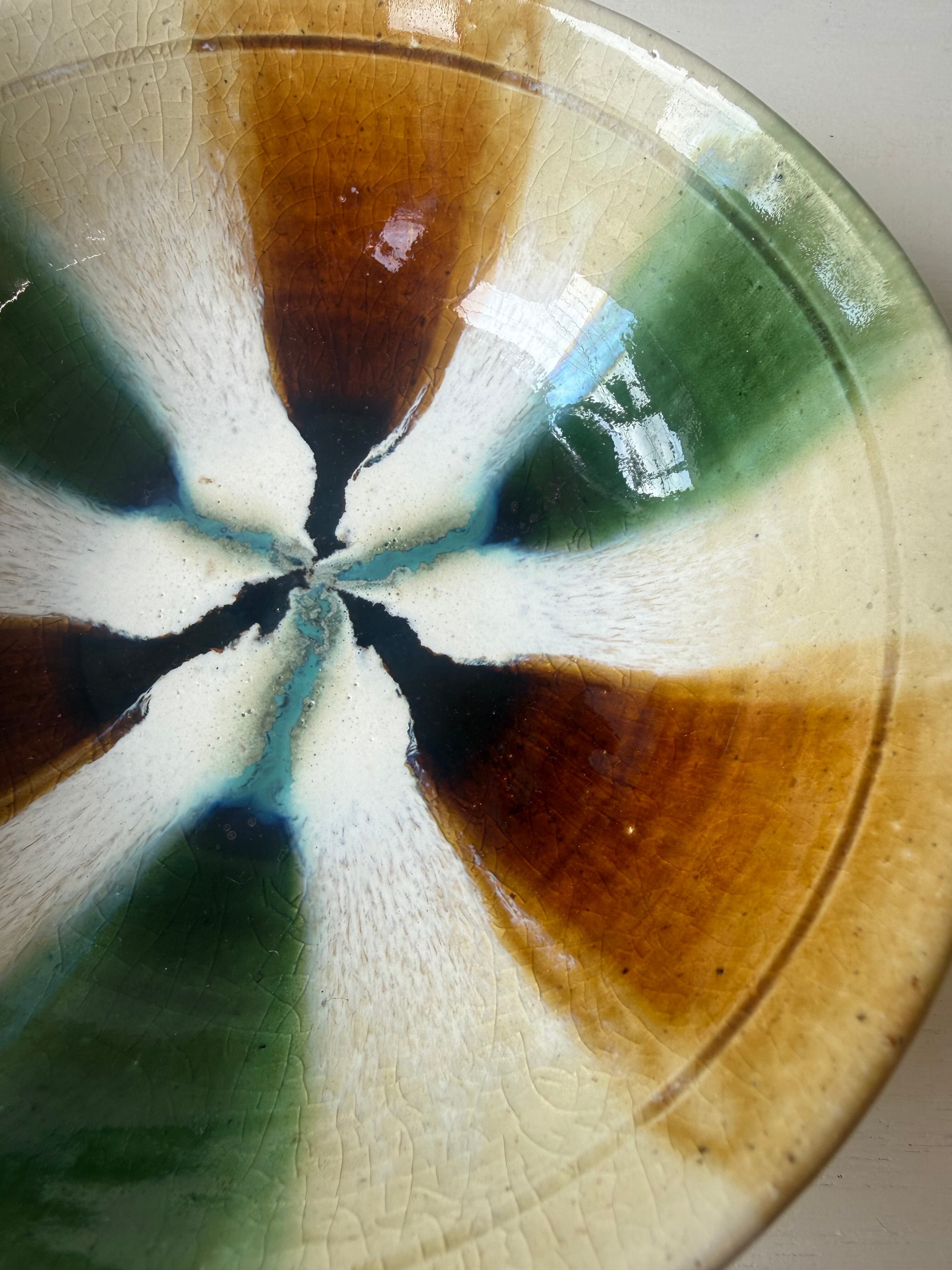 瀬戸本業窯 三彩 スープ鉢 大 (緑・飴)